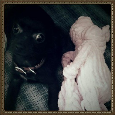 This is Chloe. Nina and D.O.G.'s puppy. She is very spoiled, and loves warm clothes!